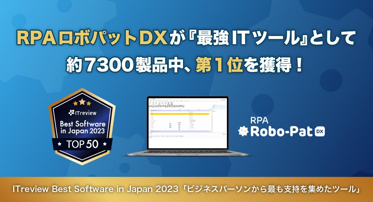 RPAロボパットDXが『最強ITツール』として第1位(約7300製品中)を獲得~ITreview Best Software in Japan 2023「ビジネスパーソンから最も支持を集めたツール」~