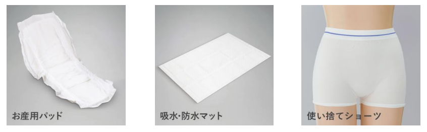 破水してから病院に向かうまでに必要な衛生用品がコンパクトなセットになっているためママが事前に準備する手間や費用を軽減できます。