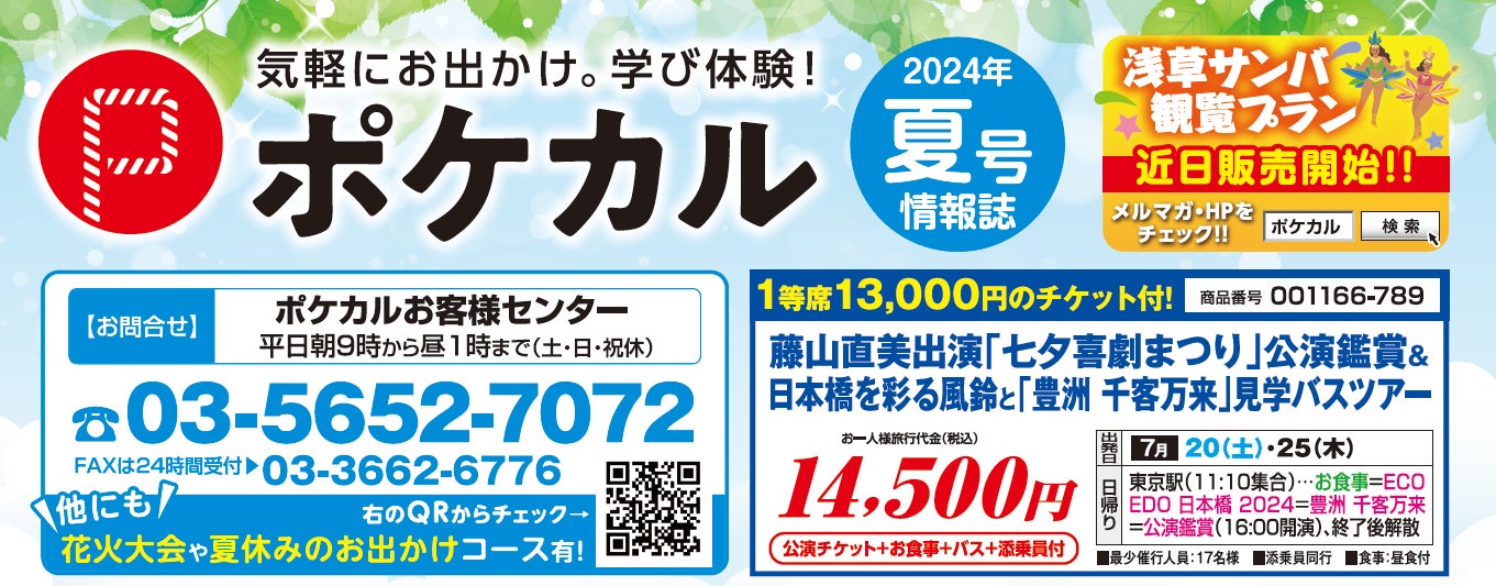 【ポケカル夏号】夏休みのお出かけにオススメ!日帰りツアー申込開始
