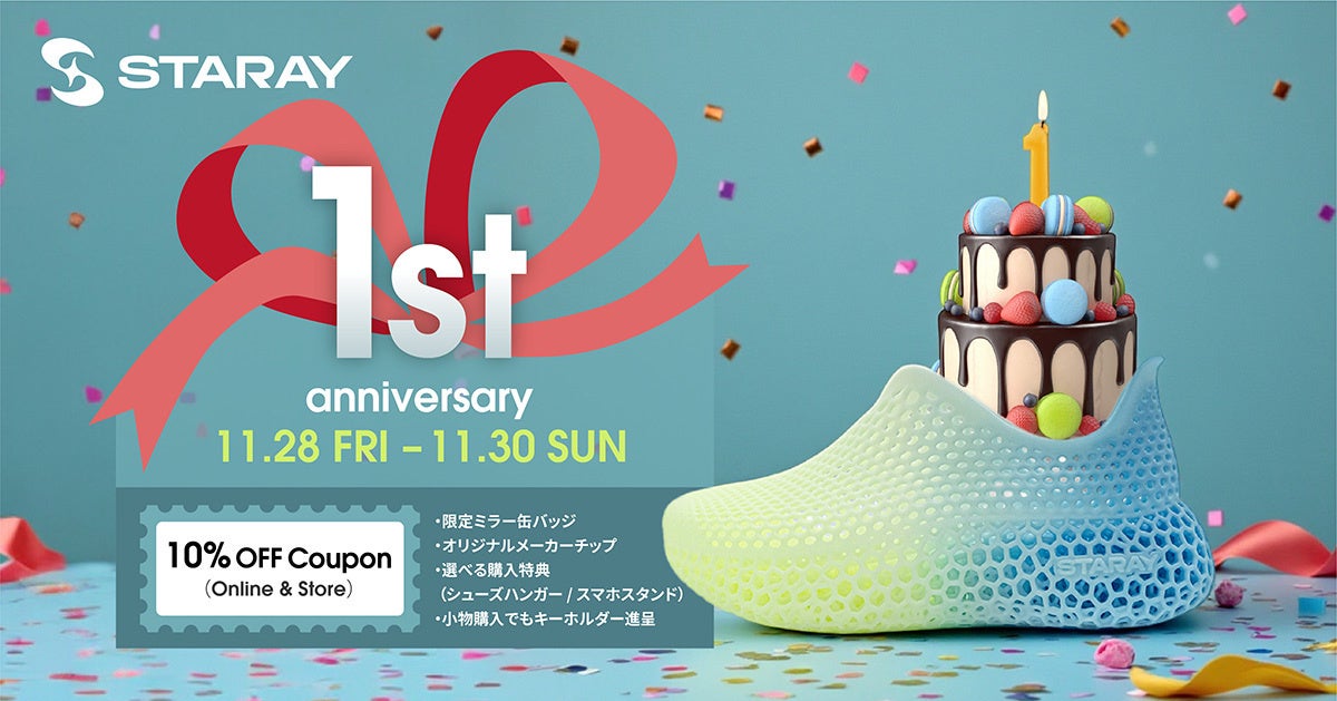 APPLE TREE株式会社(本社:大阪府大阪市、代表取締役社長:朴秀明)が取り扱う3Dプリントシューズブランド「STARAY」は、明日2025年11月28日(金)、北堀江店の開店1周年を迎えます。