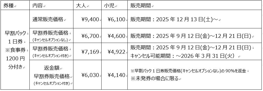 ※キャンセルは全額返金ではありません。早割券販売価格の90%を返金致します。こちらが必要な方は購入画面で「補償を受ける」を選んでください。