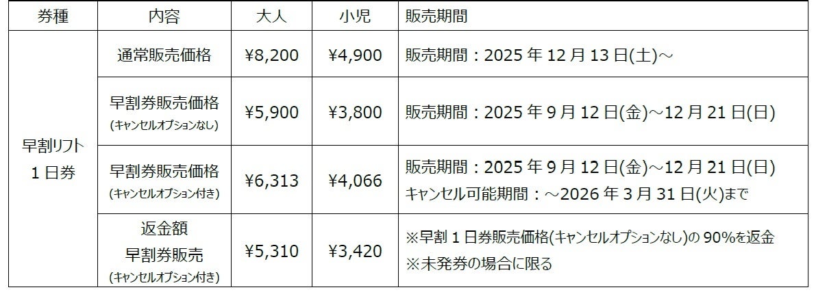2.おトクな早割リフト券・早割シーズン券の販売開始