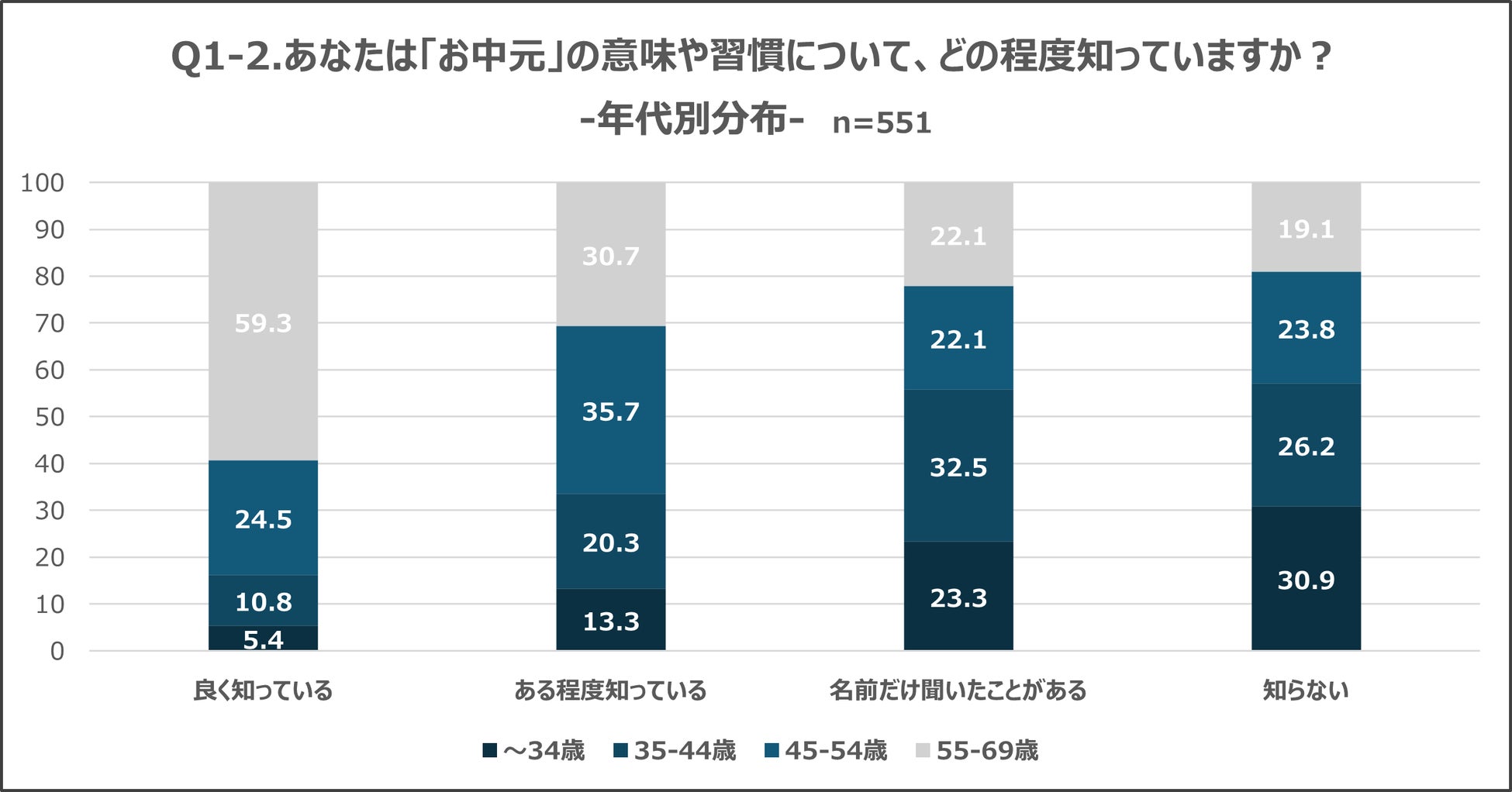 しかし一方で、「名前だけ聞いたことがある」(15.6%)や「知らない」(7.6%)といった人も一定数存在し、特に年齢層が若いほど文化としては馴染みが薄い状況が伺えます。
