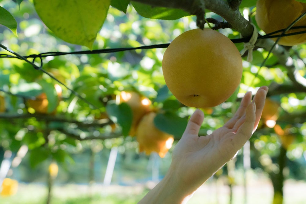 むことができます。農園に到着したら、約1時間の梨狩りを体験。収穫した