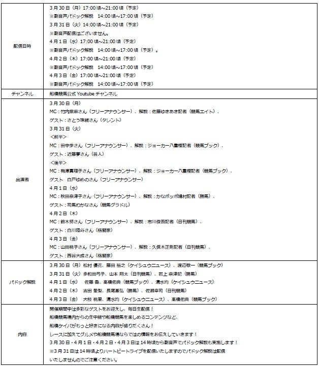 船橋ケイバでは、令和7年度第13回開催、並びに令和8年度第1回開催を3月30日(月)から4月3日(金)まで実施いたします。