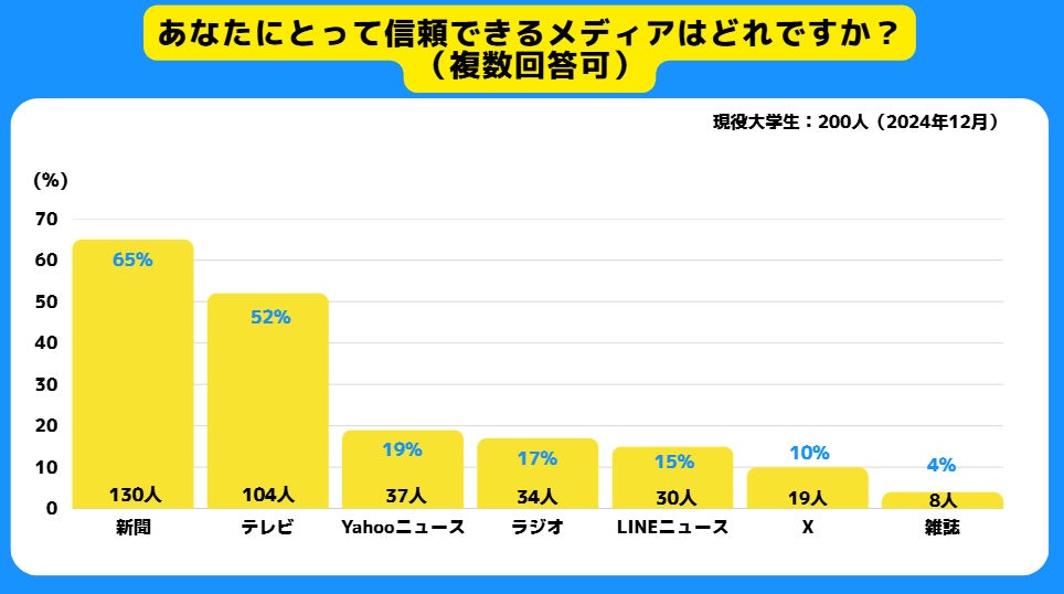【Z世代のホンネ調査】現役大学生のうち、42%がマスメディアよりSNSを信用すると回答。情報は正確性よりも”早さ”で選ぶのが主流
