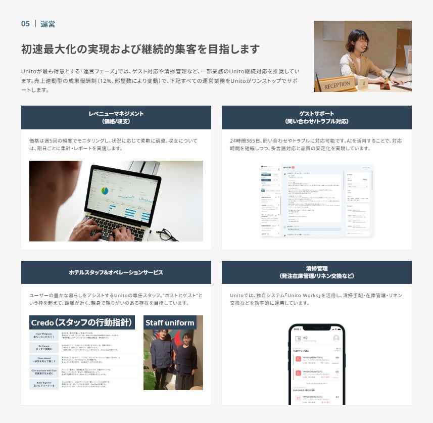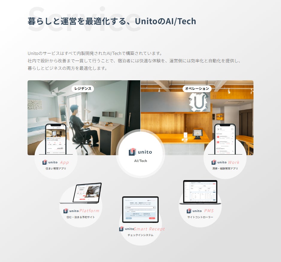 不動産・デベロッパー企業の民泊ブランド立ち上げ支援システム「unito OS」の開発・運営