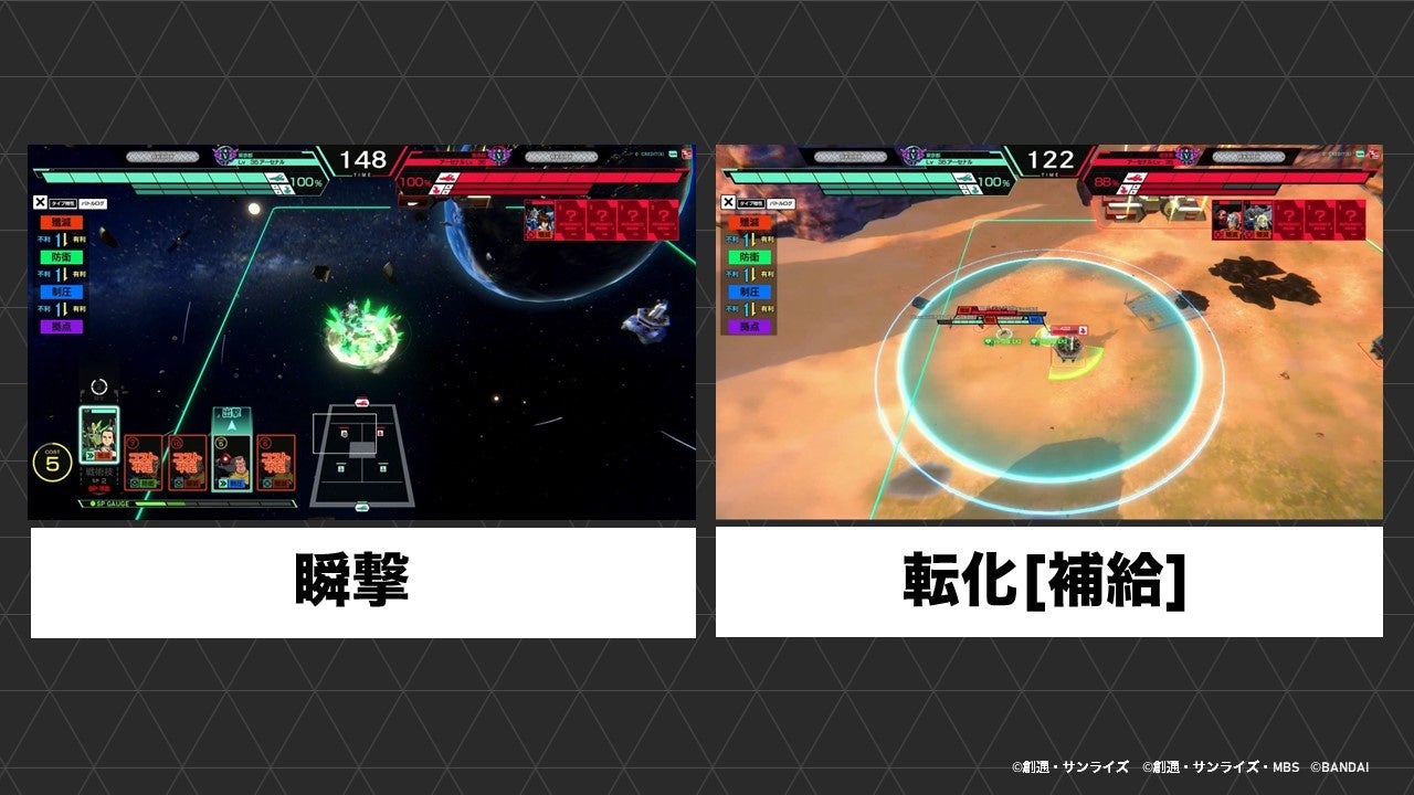 味方MS同士が連携する連携戦術技、指定されたPLカードをそろえ、「SQUAD RUSH」を発動させる結束戦術技や、任意のミッションをクリアして発動する共闘戦術技を駆使して大ダメージを与え、仲間と共に殲滅を目指しましょう。
