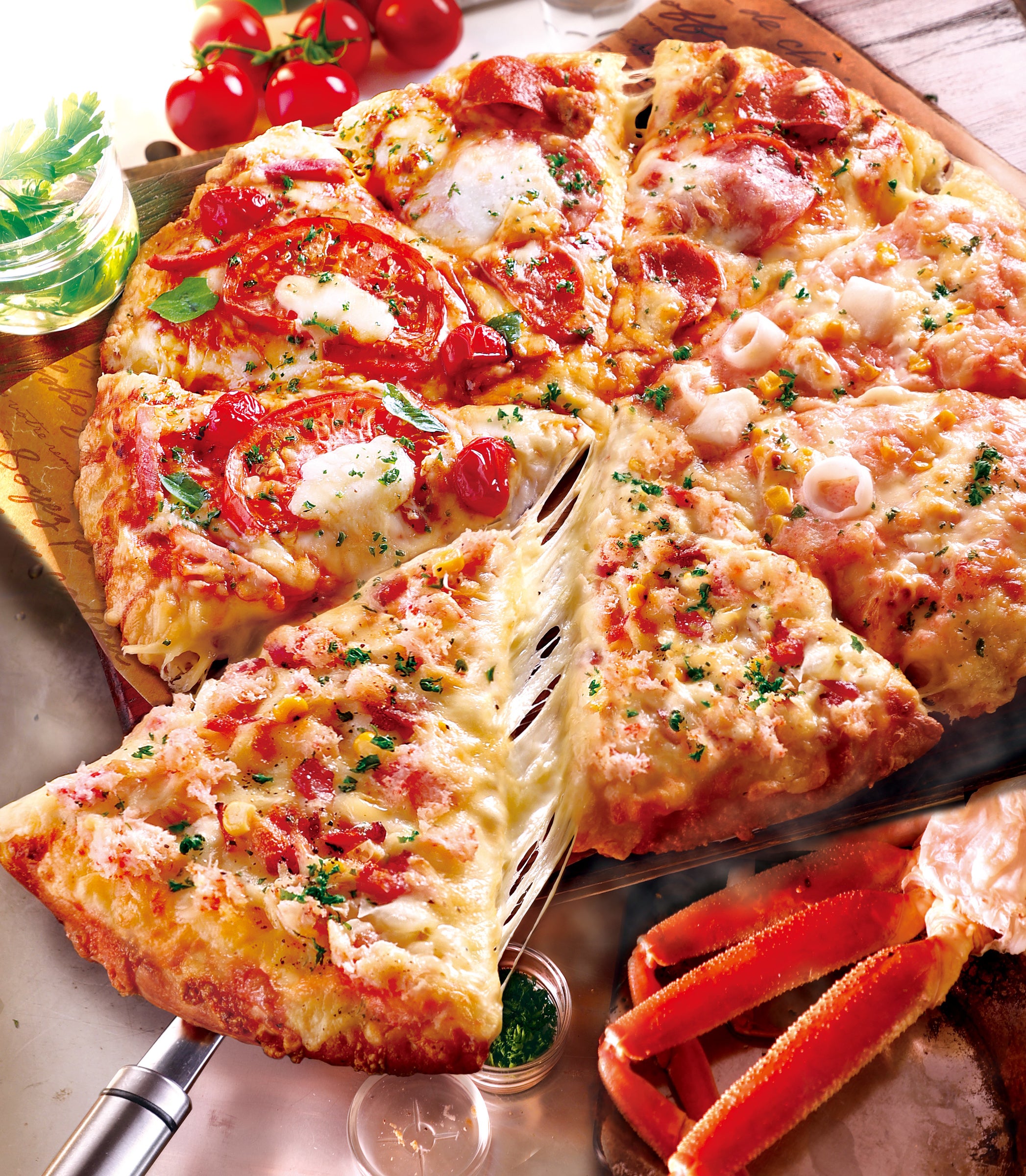 今回、もっと多くのバリエーションでこのセットメニューを楽しんでいただくため、セットでお選びいただけるピザとして、累計販売枚数1300万枚(*)を突破したよくばりシリーズの中から、 「カニのよくばりクォーター」を加えました。このピザは、冬の限定メニュー「カニじゃが」が入った大人気のクォーターピザです。