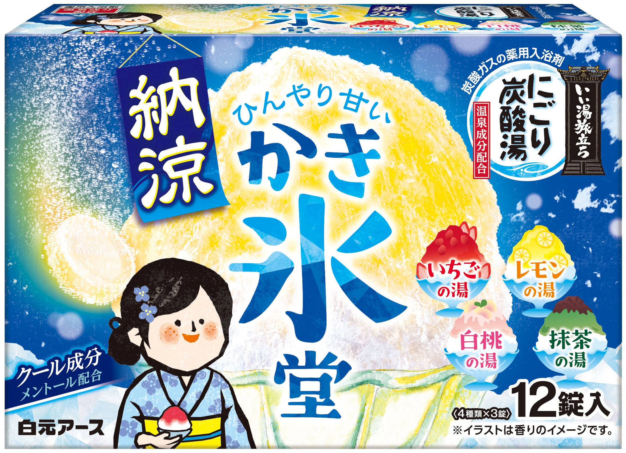 『いい湯旅立ち 納涼にごり炭酸湯(たんさんとう) そよかぜの宿 12錠入』『いい湯旅立ち 納涼にごり炭酸湯 かき氷堂 12錠入』新発売