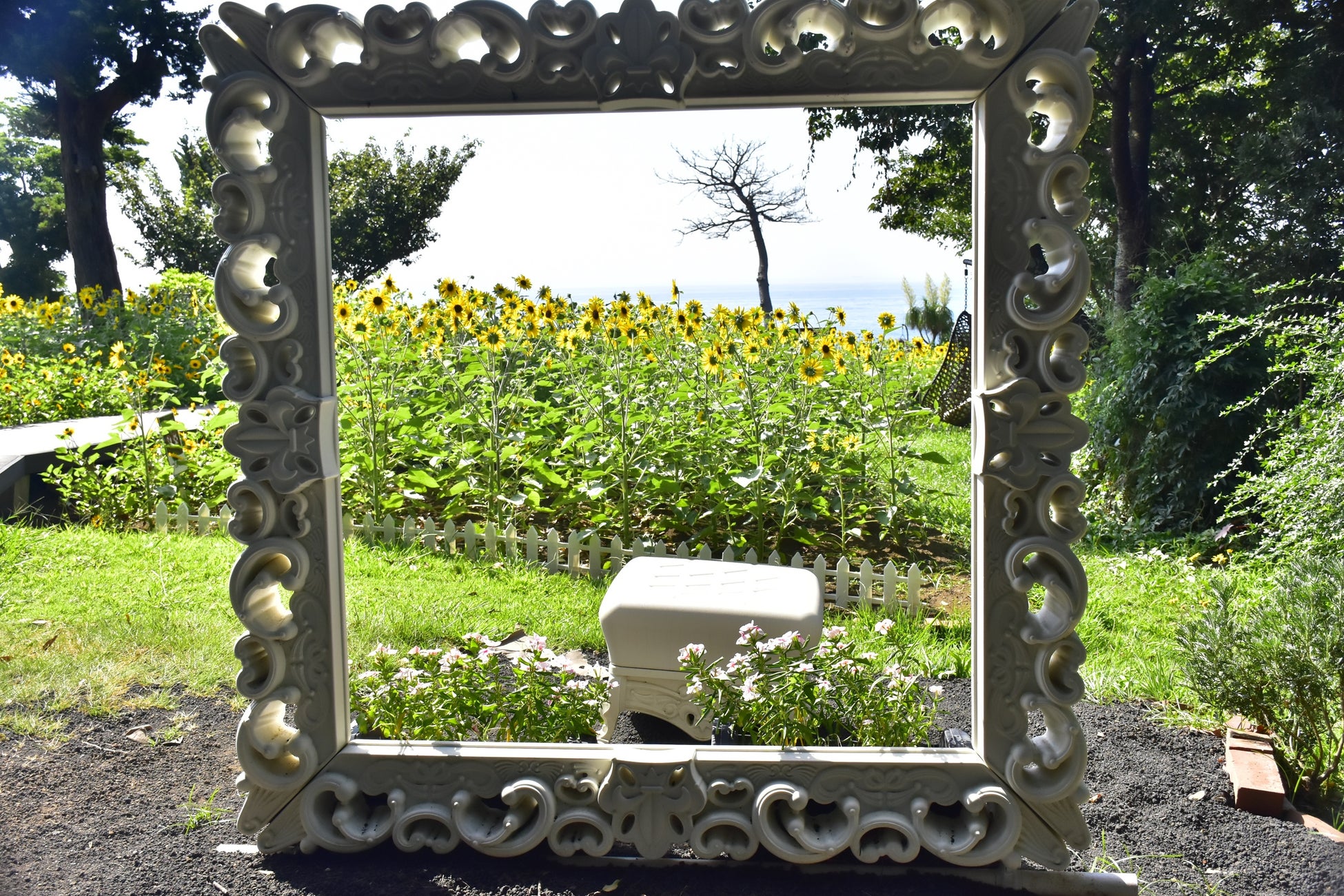 ニューヨークランプミュージアム&フラワーガーデンでは、ヒマワリの人気品種「サンフィニティ」と「サンビリーバブル」が見頃を迎え、目の前に広がる青い海と黄色い花々との鮮やかなコントラストがお客様の目を楽しませています。