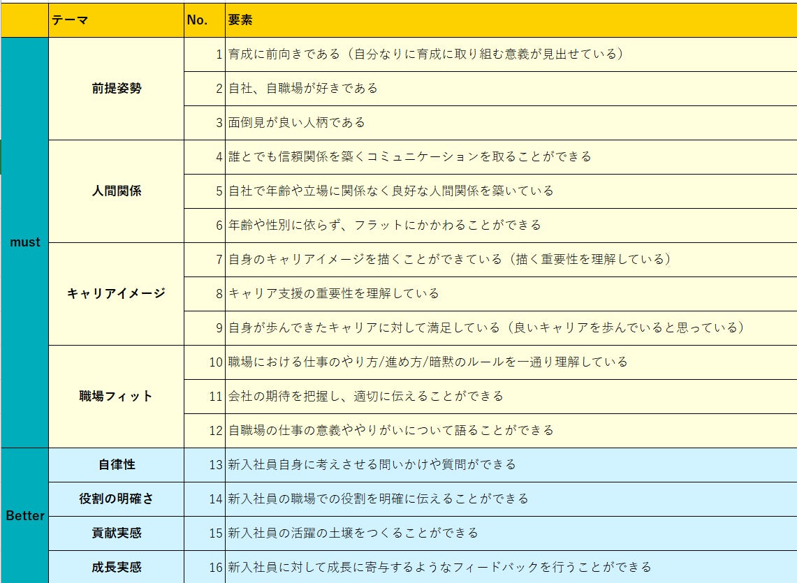 本チェックシートは、「Must(必須)」と「Better(望ましい)」の2つの観点から、育成トレーナーとして必要な資質を整理しています。そのため、あらかじめ定めた理想像を押しつけるものではありません。