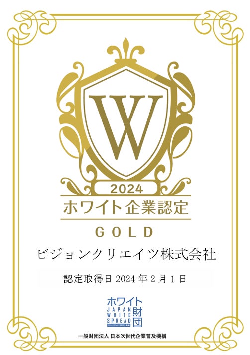 ビジョンクリエイツ株式会社は2024年2月1日に「ホワイト企業認定 ゴールドランク」を取得されました!
