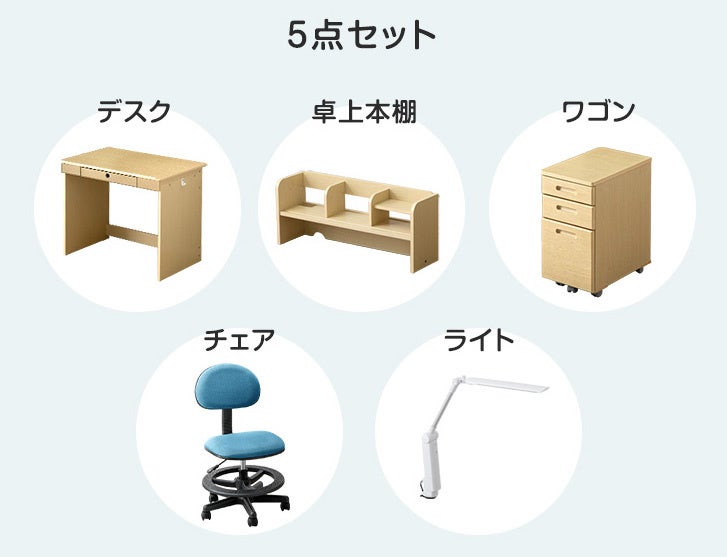 ■指紋認証ロック付き学習デスク(デスク+卓上本棚+ワゴン+チェア+ライト5点セット)