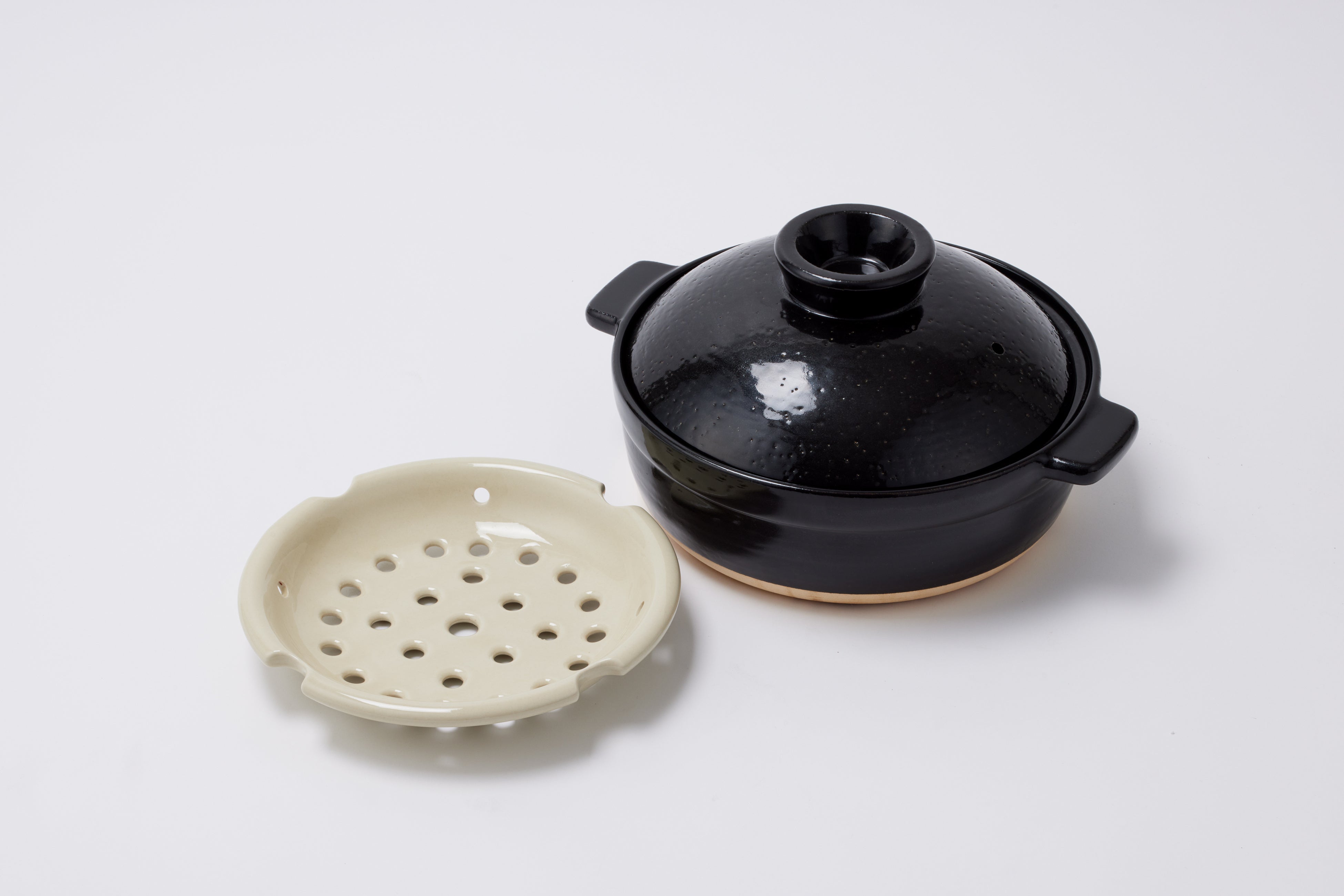 3種のプレートに加え、伊賀焼窯元・長谷園の土鍋と、蒸し料理にも便利な蒸し皿(陶製すのこ)が付いたモデルもご用意しています。長谷園の土鍋は高い蓄熱性と保温効果を備えており、蒸し皿とあわせて使えばさらに料理の幅が広がります。
