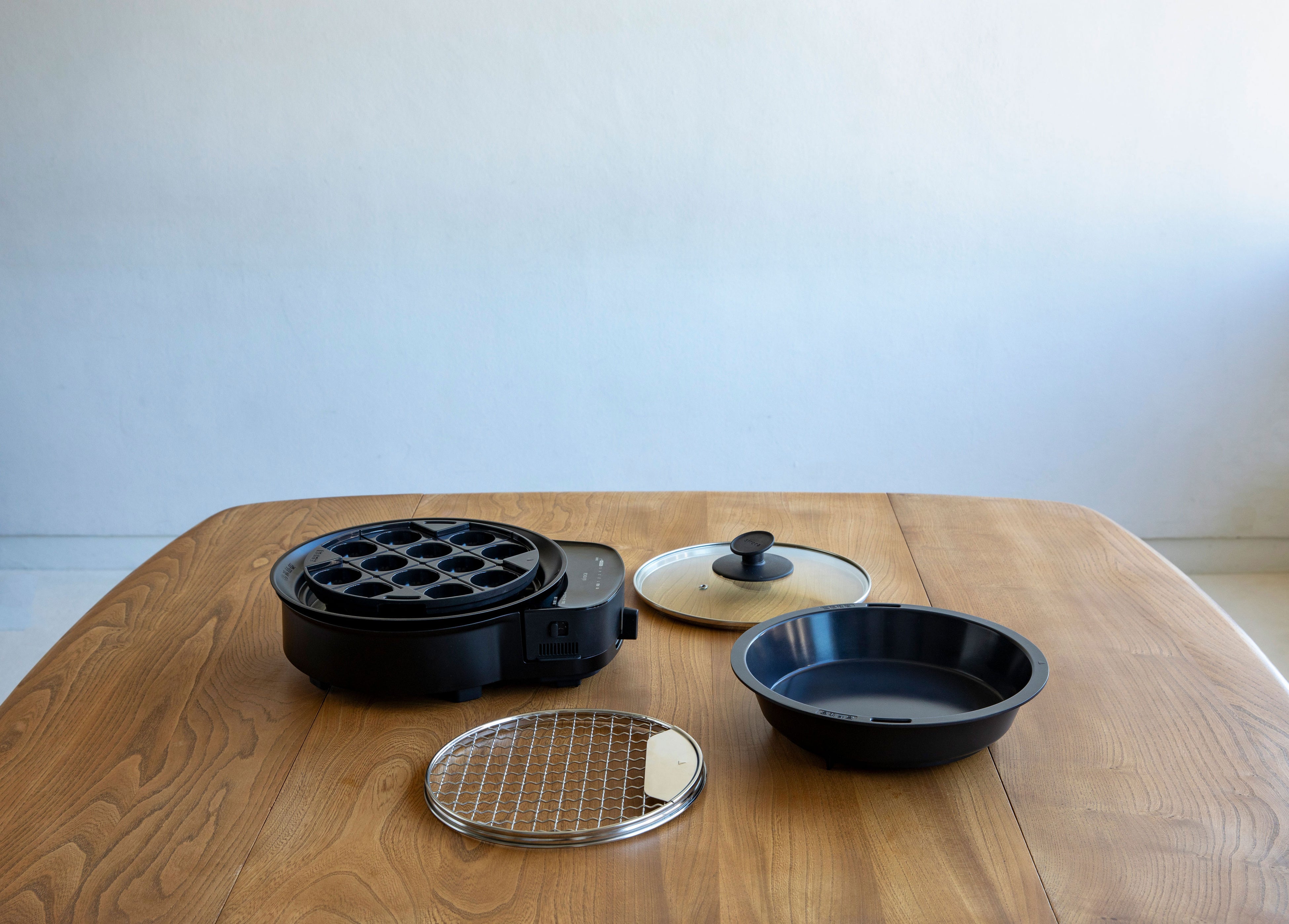 1台で多彩なおいしい料理を作ることができる「おうちいろり」。食卓を囲む時間をより一層楽しんでいただくために、各種プレートや本体には、おいしさや、使いやすさのためのこだわりが詰まっています。