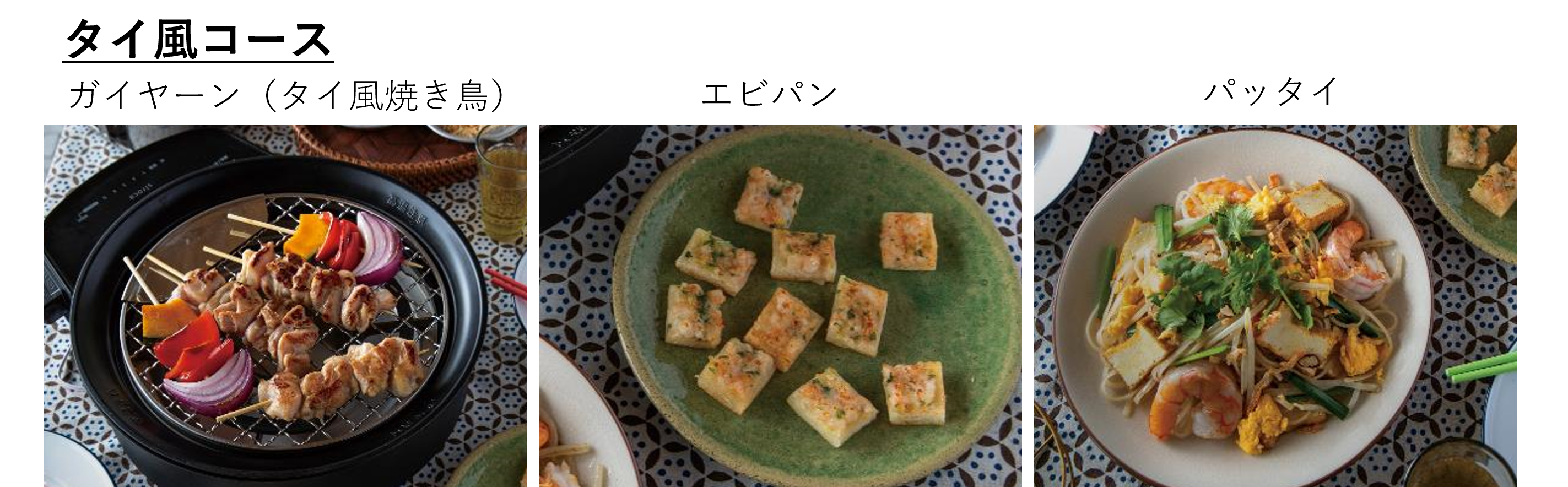 「おうちいろり」では、食事をしながらプレートの種類を変えることで1食に何通りもの使い方が楽しめる“コース料理”をはじめ、さまざまなシーンに寄り添う幅広いメニューをお楽しみいただけます。付属のレシピブックには、普段の食事に活躍する基本の料理から、週末に家族や友人みんなで集まる際など、特別感のある食事をしたいときにおすすめのおもてなし料理、自宅にいながらにして異国の風を感じられる世界の料理など、テーマに合わせた全63種*4の多彩なレシピを掲載しています。