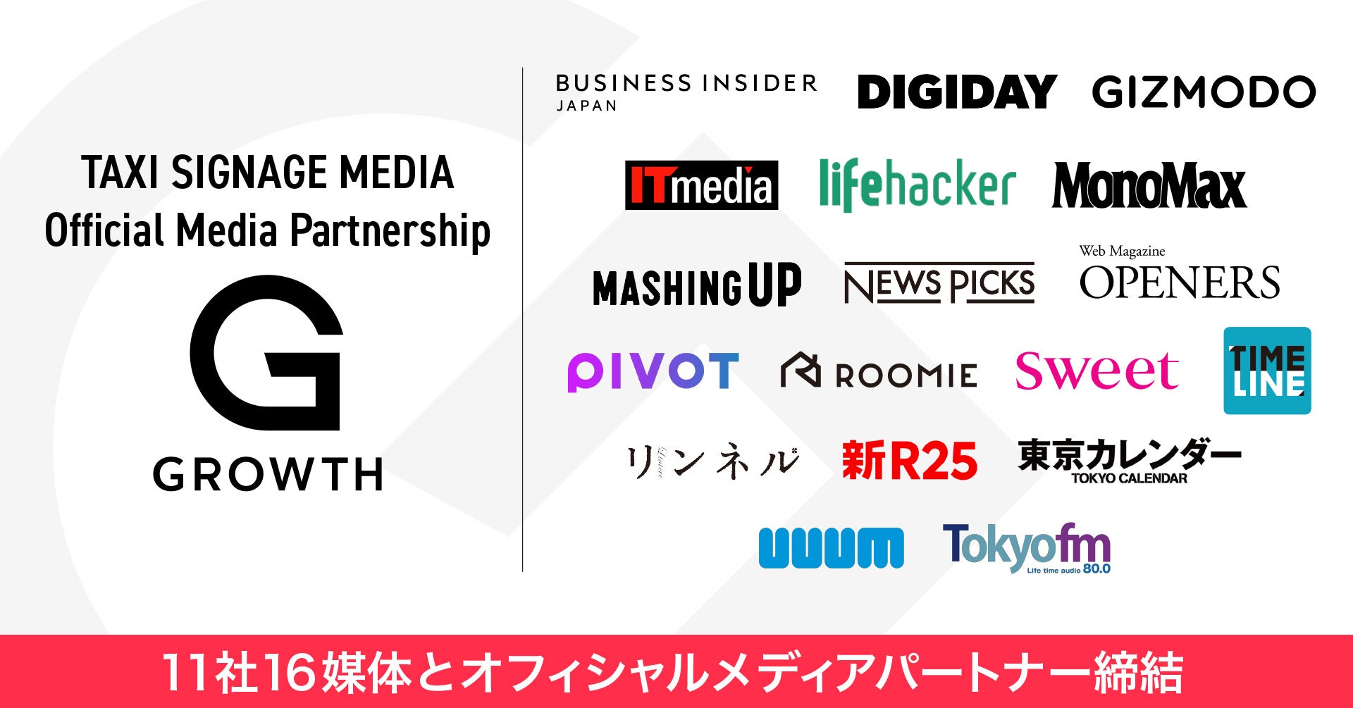 タクシーサイネージメディア「GROWTH」新たに11社16媒体とオフィシャルメディアパートナーとして提携番組コンテンツ及び広告メニューを拡充