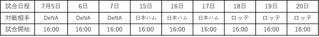 7月5日~20日のイースタン・リーグ公式戦9試合の入場券販売について
