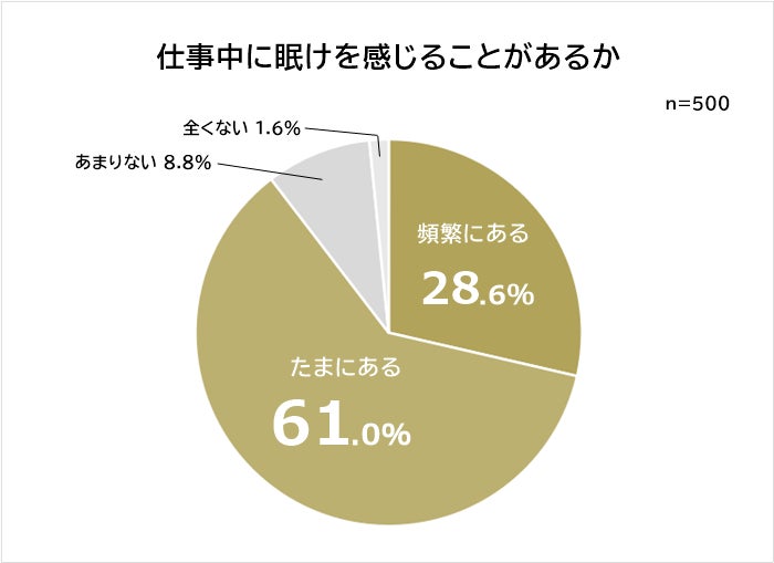 現在お仕事をしている500人に「仕事中に眠気を感じることがあるか」と聞いたところ、「頻繁にある」「たまにある」が合わせて89.6%という結果に。