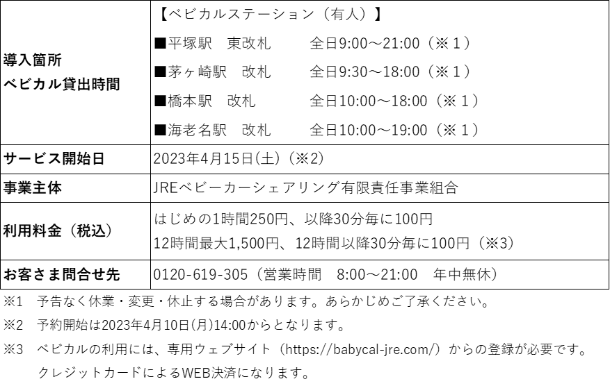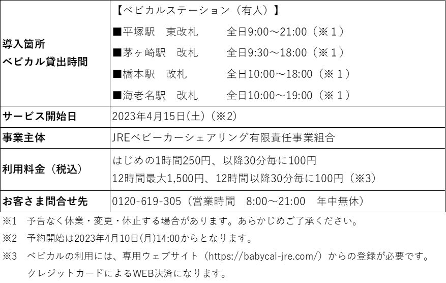 ベビーカーレンタルサービス「ベビカル」 JR東日本の駅で貸出場所が拡大!~4月15日 平塚駅・茅ヶ崎駅・橋本駅・海老名駅でサービスを開始します~