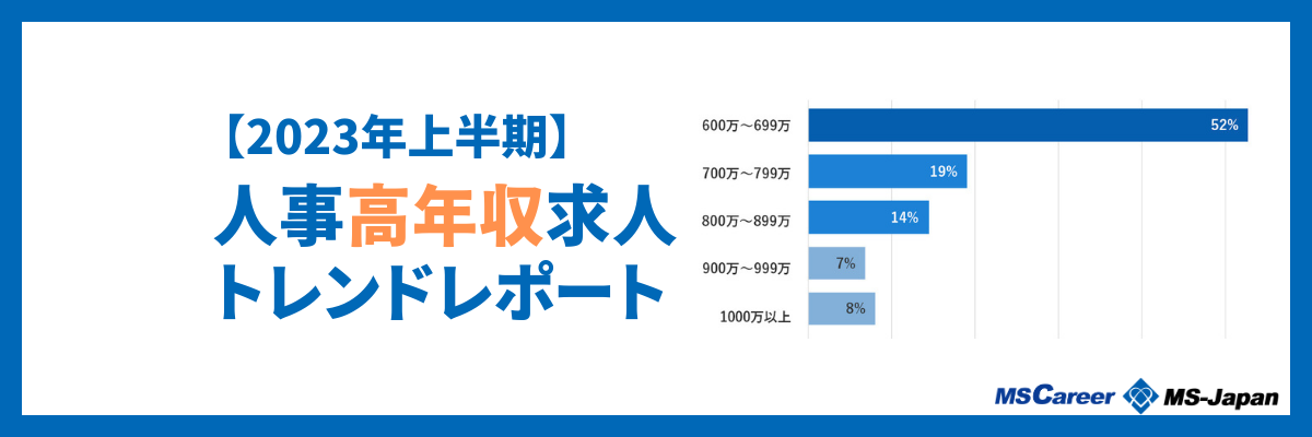 年収800万円以上求人は前期と比べ6%増加!【人事・総務高年収求人トレンドレポート・2023上半期】を株式会社MS-Japanが発表。高年収求人のおよそ3割が800万円以上!