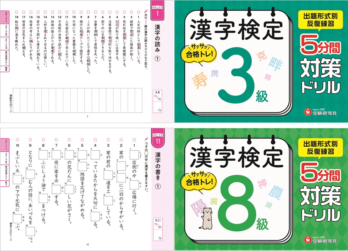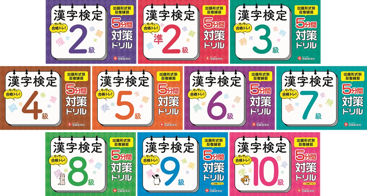 『漢字検定 5分間対策ドリル』 2級/準2級/3級/4級/5級/6級/7級/8級/9級/10級
