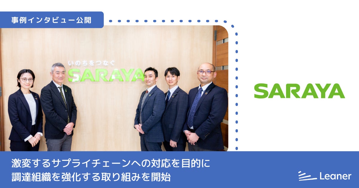 株式会社Leaner Technologies(本社:東京都品川区、代表取締役:大平裕介)は、「リーナー見積」の導入事例として、サラヤ株式会社(本社:大阪府大阪市、代表取締役社長:更家悠介)における導入効果と活用状況の事例インタビューを公開しました。