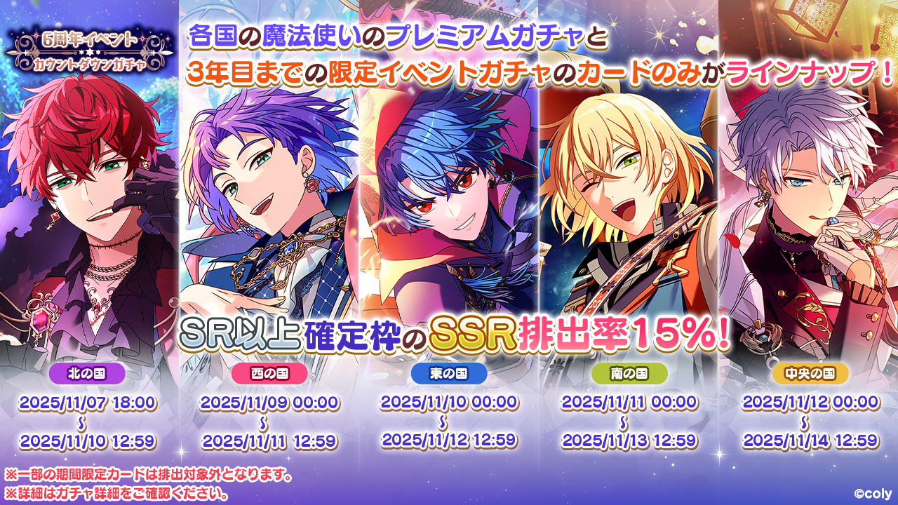 6周年の期間限定カードが国ごとにピックアップされたガチャを開催!