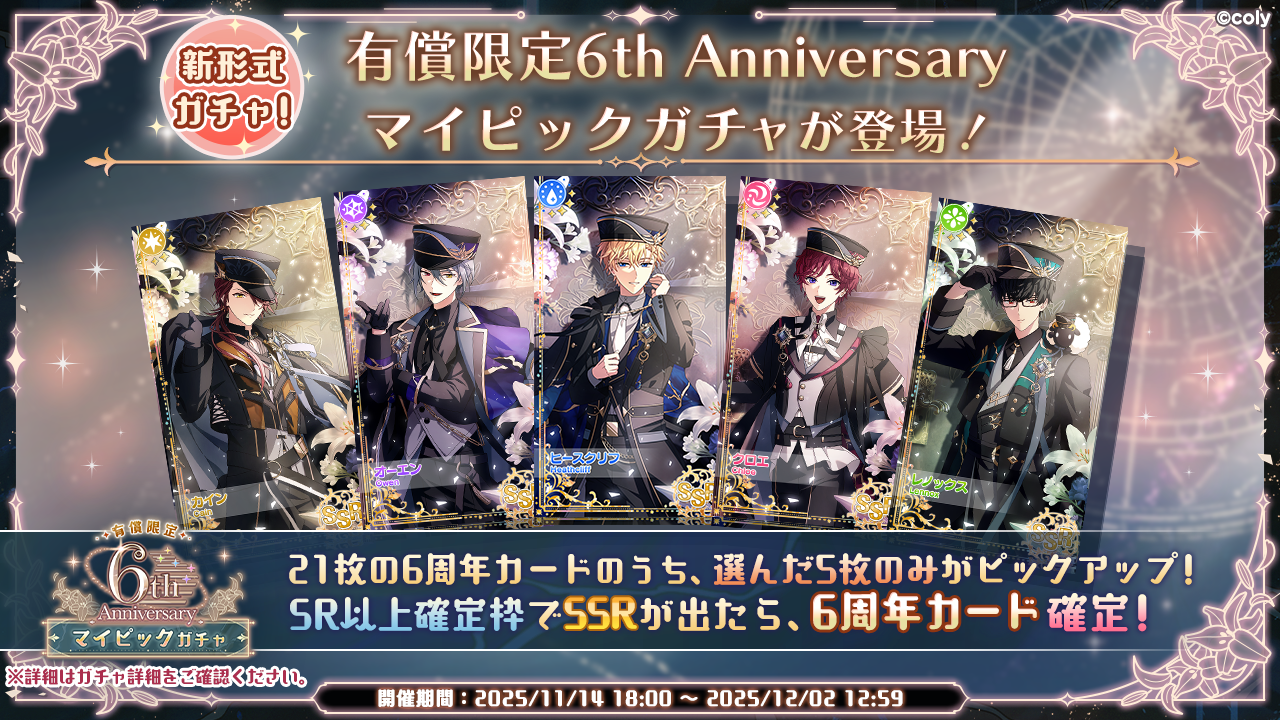 ※周年当日のみ6周年期間限定カードがラインナップに追加されます