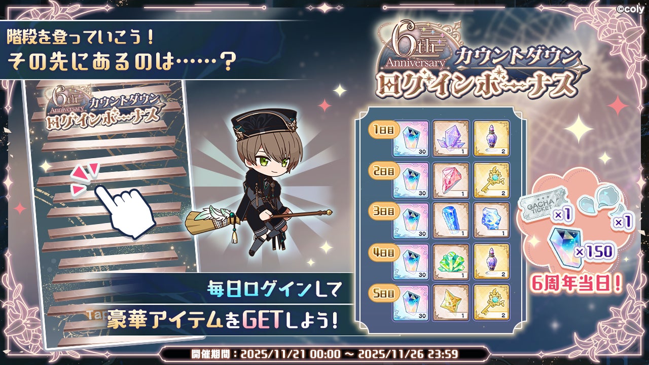 豪華報酬がもらえるログインボーナスを開催! 6周年ならではの演出とともにお楽しみください。