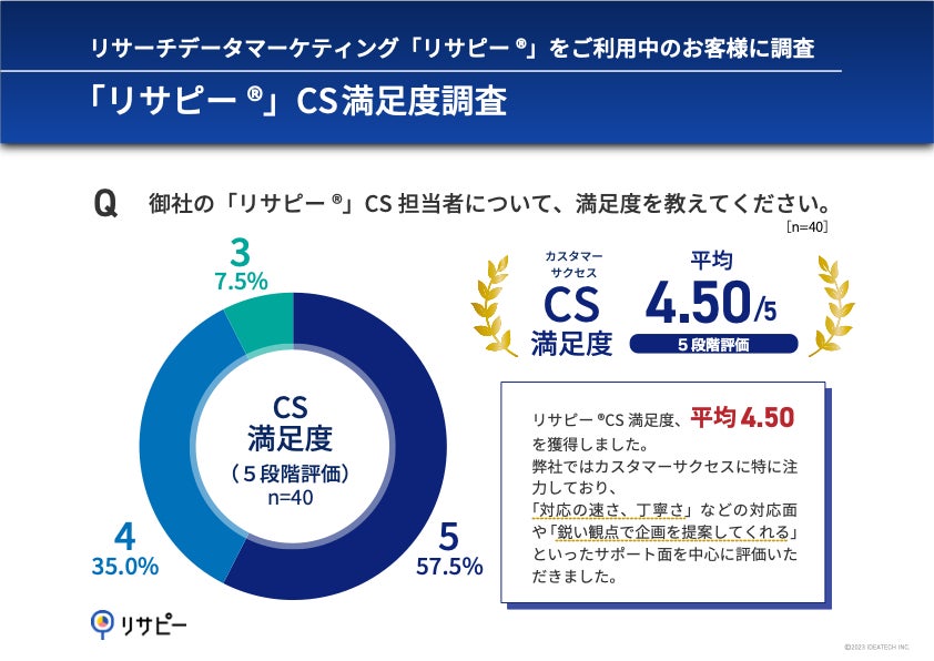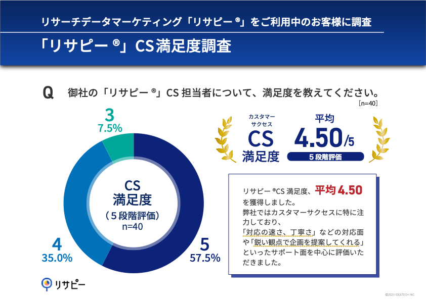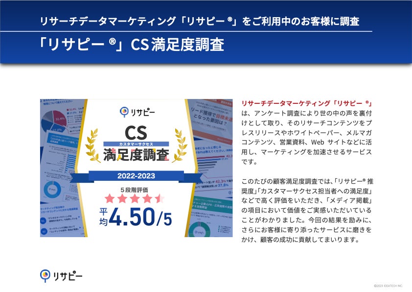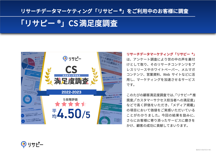顧客満足度マーケティングサービス「リサピー®︎ for CS」 https://ideatech.jp/service/research-pr-cs