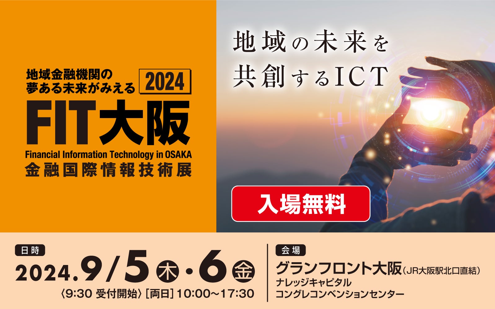 「FIT大阪2024」は「地域の未来を共創するICT」をテーマに、地域金融機関向けの最新ソリューションを体験していただける「金融機関のためのITフェア」です。2018年の初開催以来、今年も数多くの金融機関(証券・保険・ノンバンクなども含む)および、金融機関系列会社のIT・マーケティング担当者や決裁者の来場が予想されています。