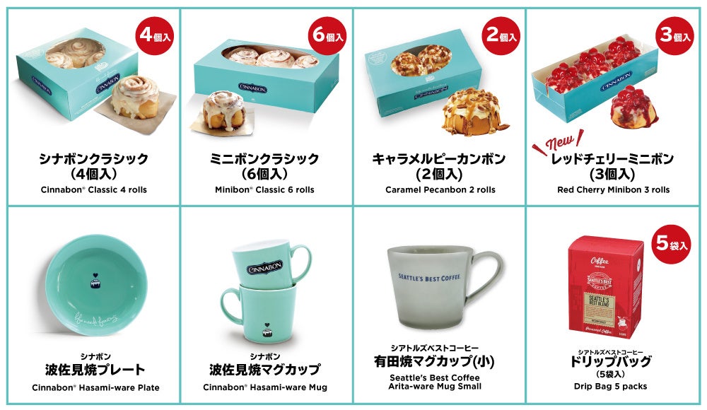 また、人気のシナボングッズや、「シナボン」と相性が抜群の「シアトルズベストコーヒー」のドリップバッグコーヒーなど、豊富に取り揃えております。