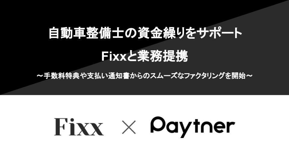 「ペイトナー ファクタリング」を提供するペイトナー株式会社(本社:東京都港区、代表取締役:阪井優、以下ペイトナー)は、自動車の出張整備サービスを全国展開する株式会社Fixxと業務提携に至りました。
