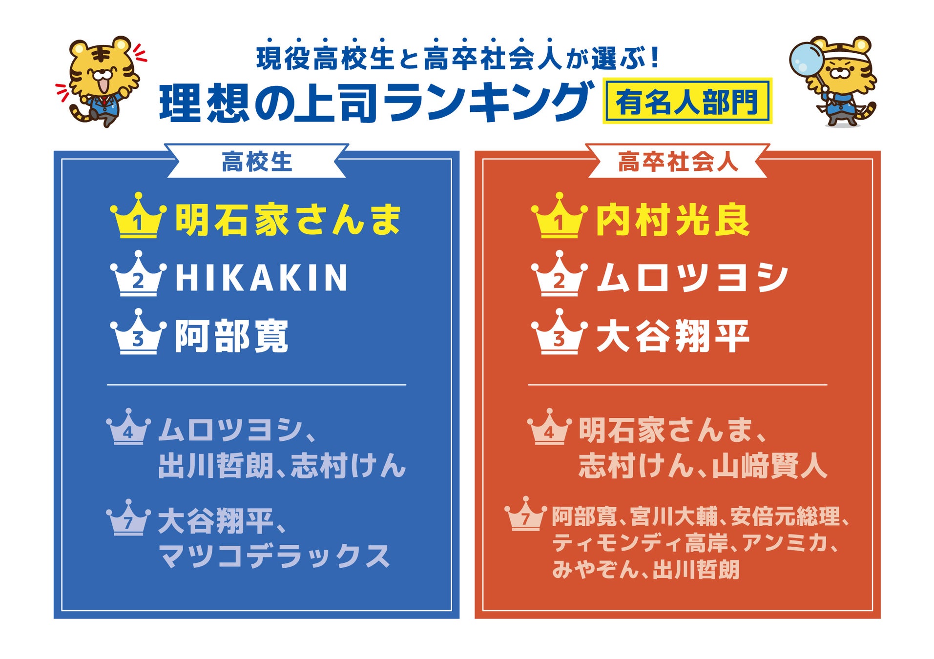 【現役高校生と高卒社会人が選ぶ理想の上司ランキング 有名人部門】