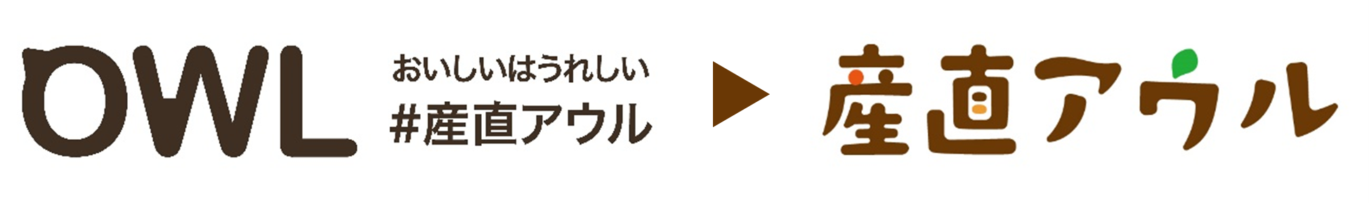 産直アウルは2019 年 12 月にサービス提供を開始しました。全方位から生産者の皆さんをサポートしたいという想いから、首の可動域が広く、広範囲を見渡すことができるフクロウを意味するOWL(アウル)の英字ロゴを用いていましたが、より多くの方々に知っていただき、親しみやすいサービスとなることを目指し、従来の英語表記から日本語表記の「産直アウル」としてロゴを一新することとなりました。
