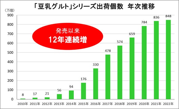 <発売以来12年連続出荷増!>乳酸菌も植物由来の「豆乳グルト」シリーズ累計出荷5,000万個突破※