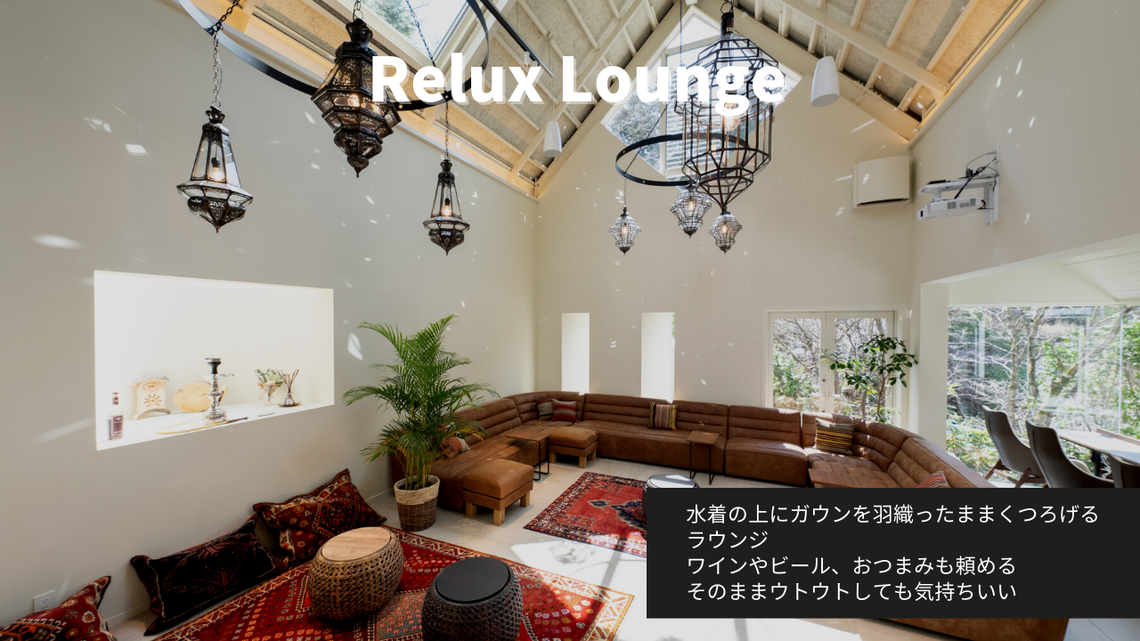 4種類のサウナと3種類の水風呂を味わったら、水着の上からサッとガウンを羽織って、そのままラウンジでくつろげます。ラウンジではビールやワインなどのアルコールも頼めます。眠くなったらそのまま寝てしまっても構いません。