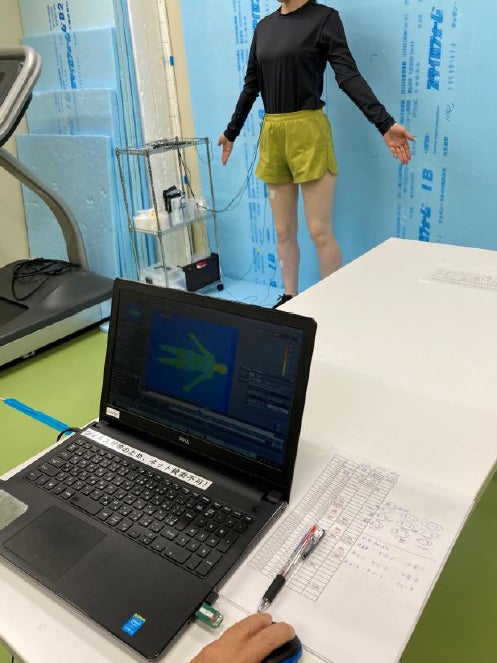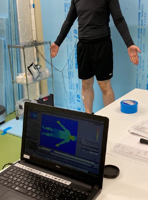 ・サーモグラフィの撮影は、急激な体温の低下を抑えるため、試用サンプルを着用したままおこなっています。