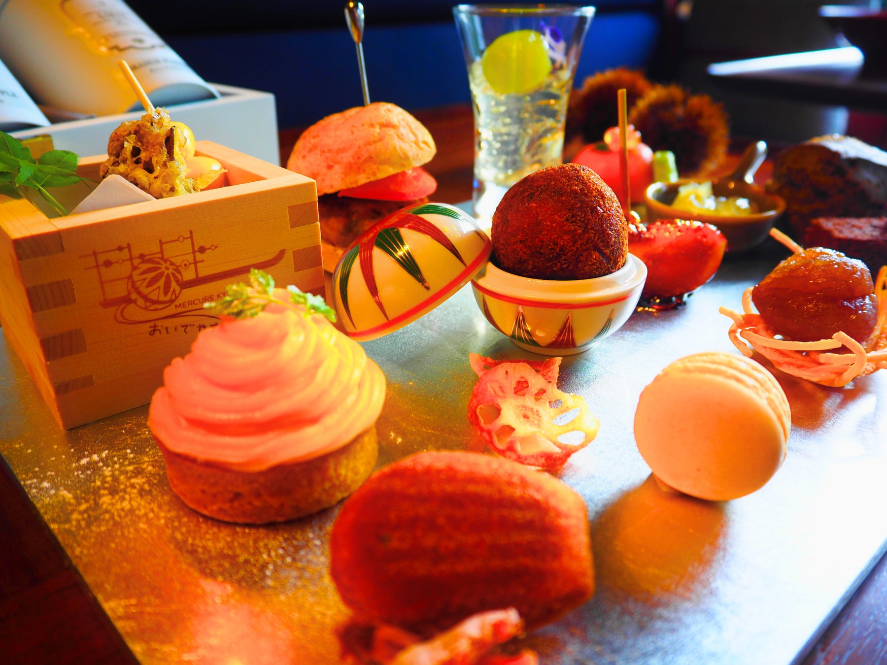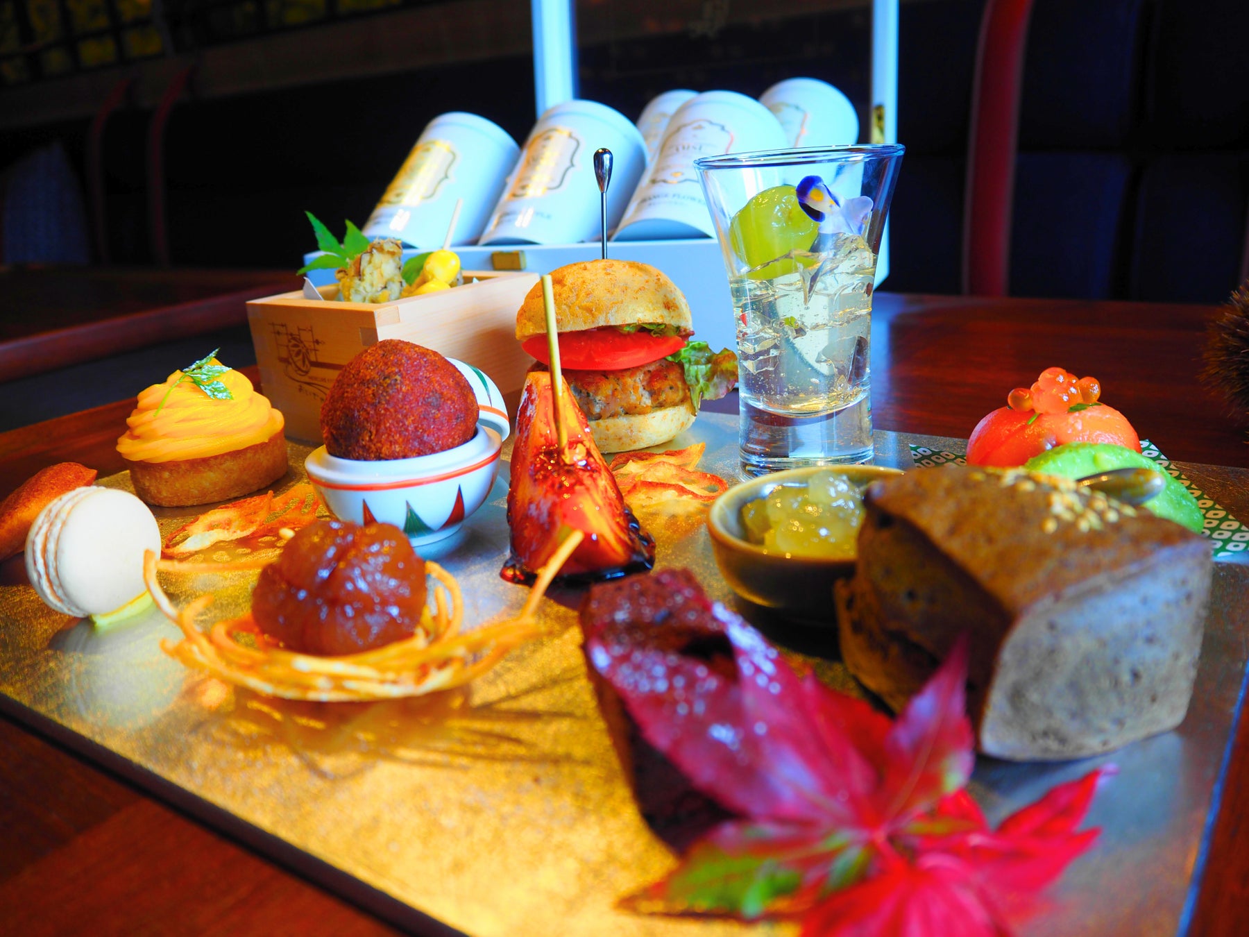 秋に食べごろを迎える舞茸のフリットや季節の銀杏の串焼きなど!スイーツもセイボリーも贅沢に、芳醇な秋の味覚を「曲水の宴」のコンセプトでデザインされたレストランの中でお楽しみ頂けます。