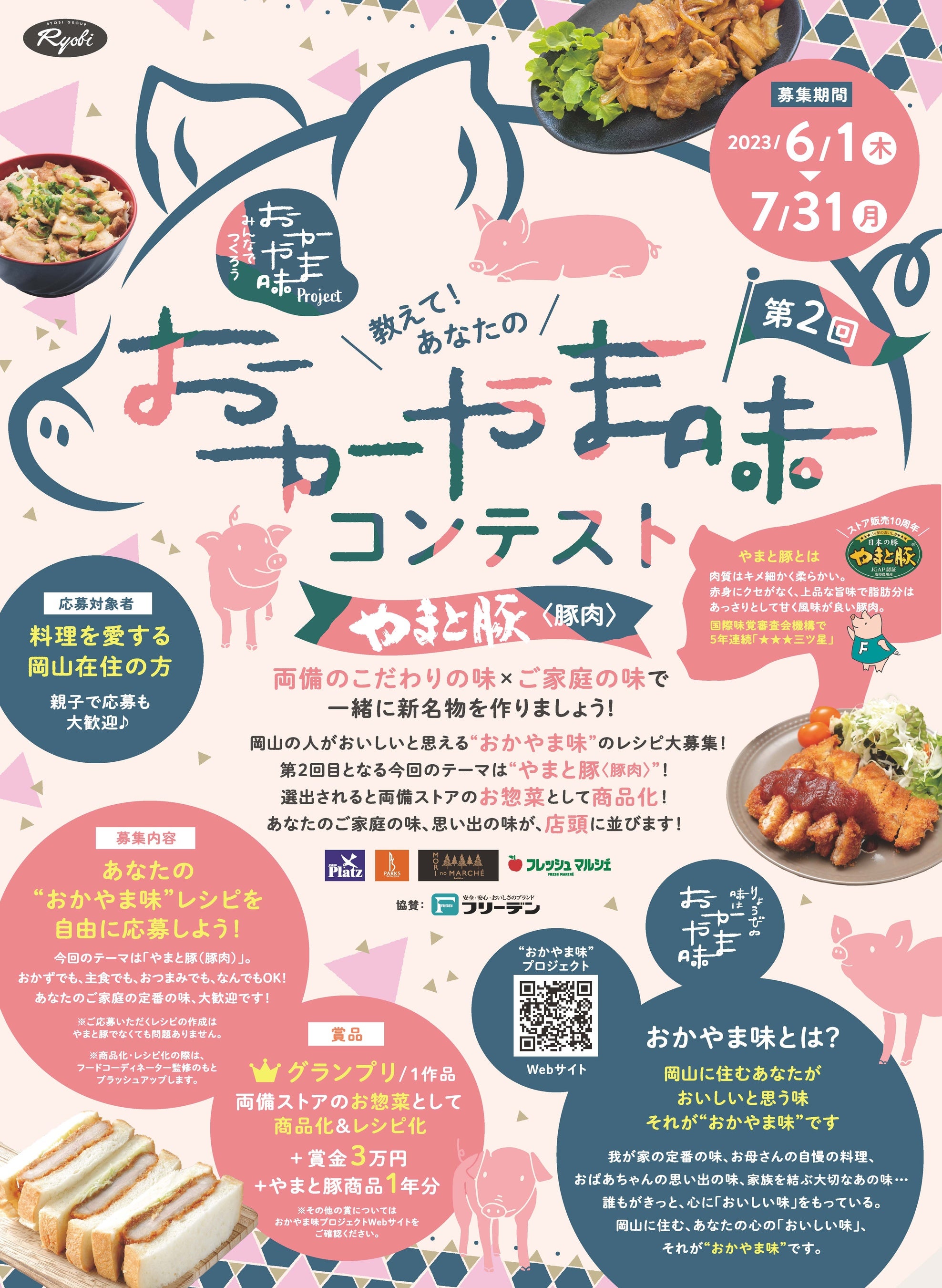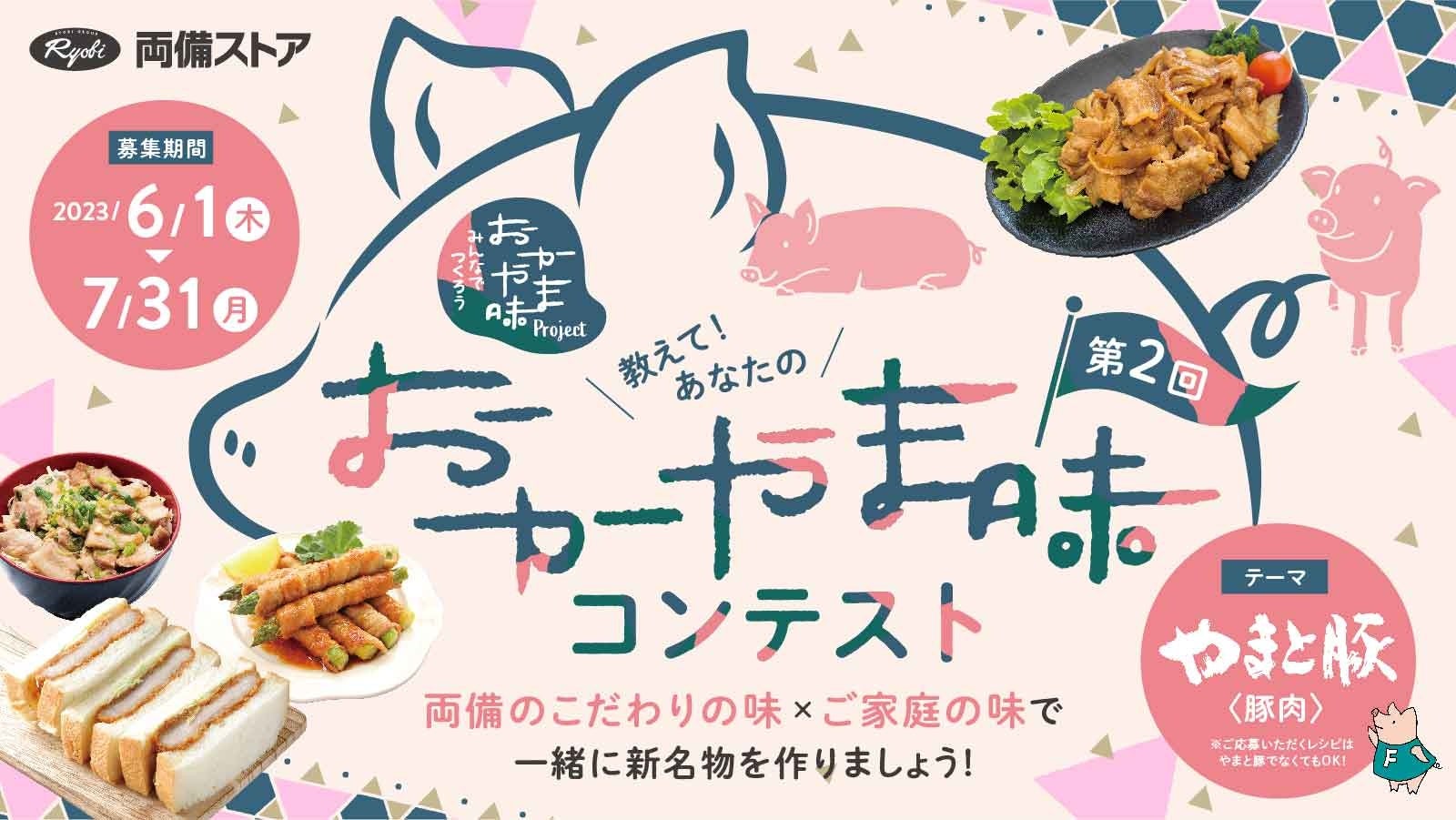 2回目となる今回のテーマは「やまと豚(豚肉)」。「やまと豚」は株式会社フリーデン(所在地:神奈川県平塚市、事業内容:豚肉の生産・加工・販売など)を代表するブランド豚で、両備ストアカンパニーでも販売10周年を迎えるこだわりの味です。今回のレシピコンテストを通じて、両備ストアカンパニーの「こだわりの味×岡山のご家庭の味」のコラボによる新名物の誕生を目指します。