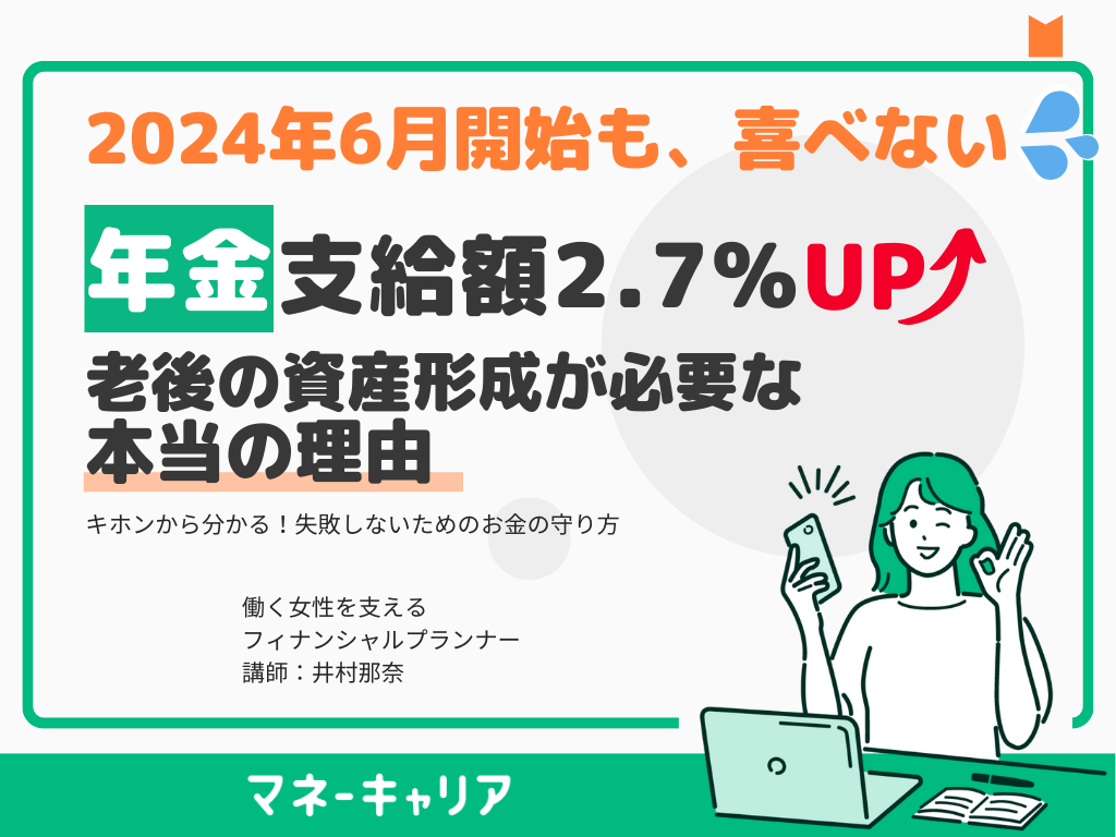 この度マネーキャリアは、2024年6月より年金支給額が2.7%上がったことに伴い、老後の資産形成と年金制度に関する無料オンラインセミナーを開催しています。