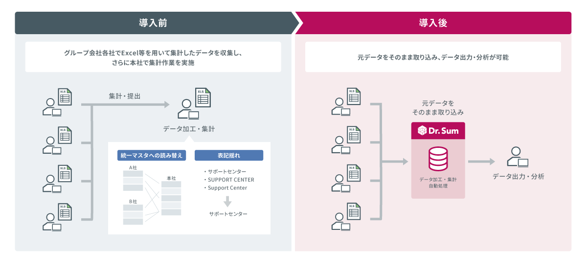 国内外で15社の関係会社を傘下に持つ同社では、グループ人事管理の高度化および2023年3月期決算から上場企業などを対象とした人的資本の情報開示の義務化に伴う法改正対応を目的として、「Dr.Sum Cloud」を導入しました。