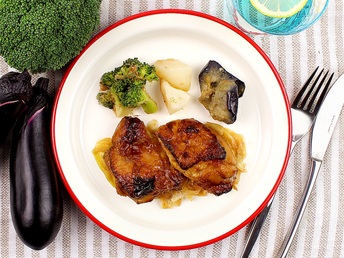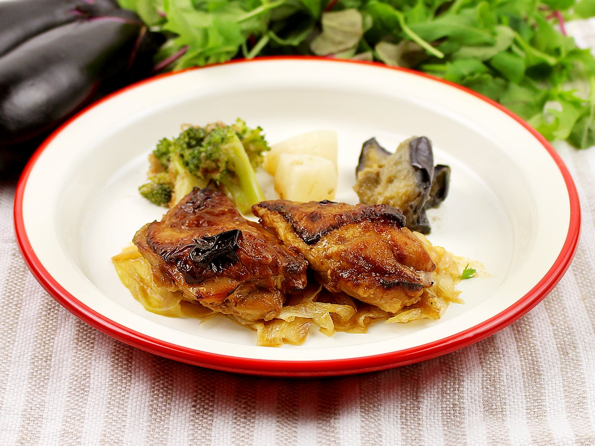 ジューシーに焼き上げた鶏肉の照り焼きです。大ぶりにカットした鶏もも肉に、本醸造しょうゆを使用した味わい深いタレで漬け込み焼き上げました。甘辛いタレの隠し味に山椒を混ぜあわせています。添え野菜の長葱と共にお召し上がりください。