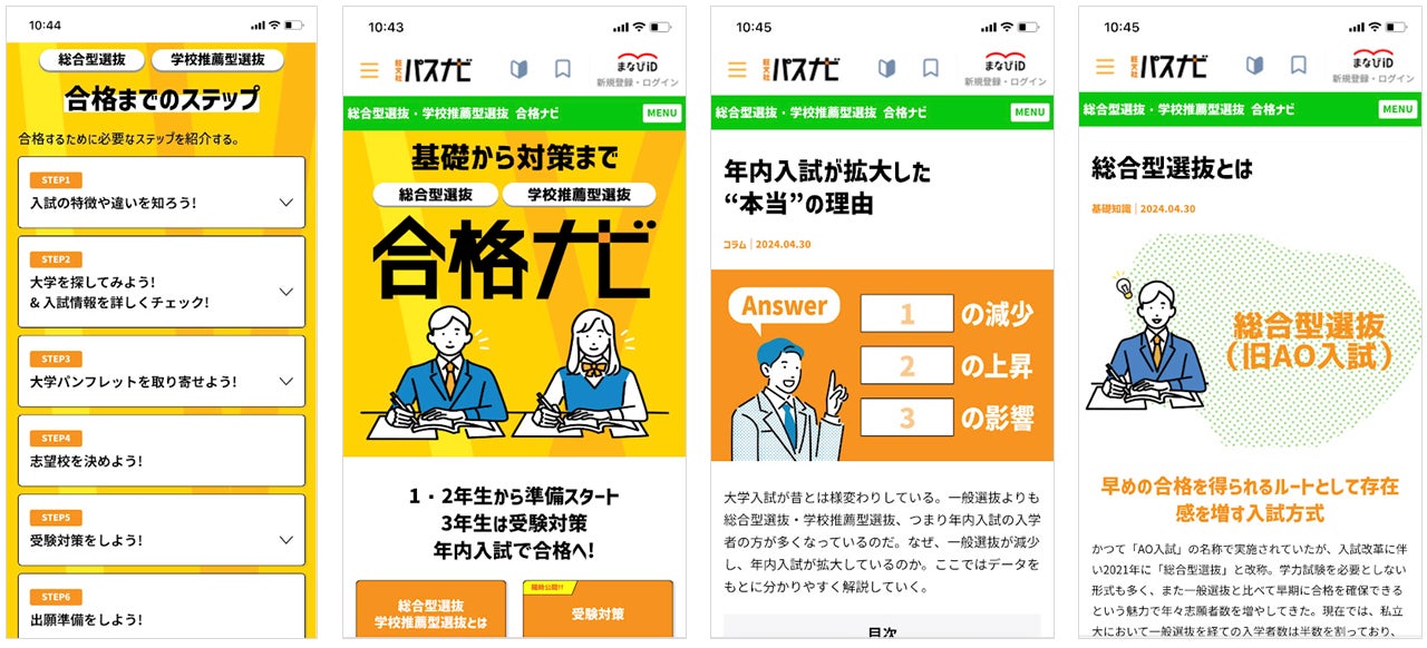 この度、旺文社が新しく公開する「総合型選抜・学校推薦型選抜 合格ナビ」では、高校3年生向けの受験対策だけでなく、高校1・2年生からやっておくべきアクションなどを掲載し、年内入試受験を検討しているすべての高校生をナビゲートしてまいります。