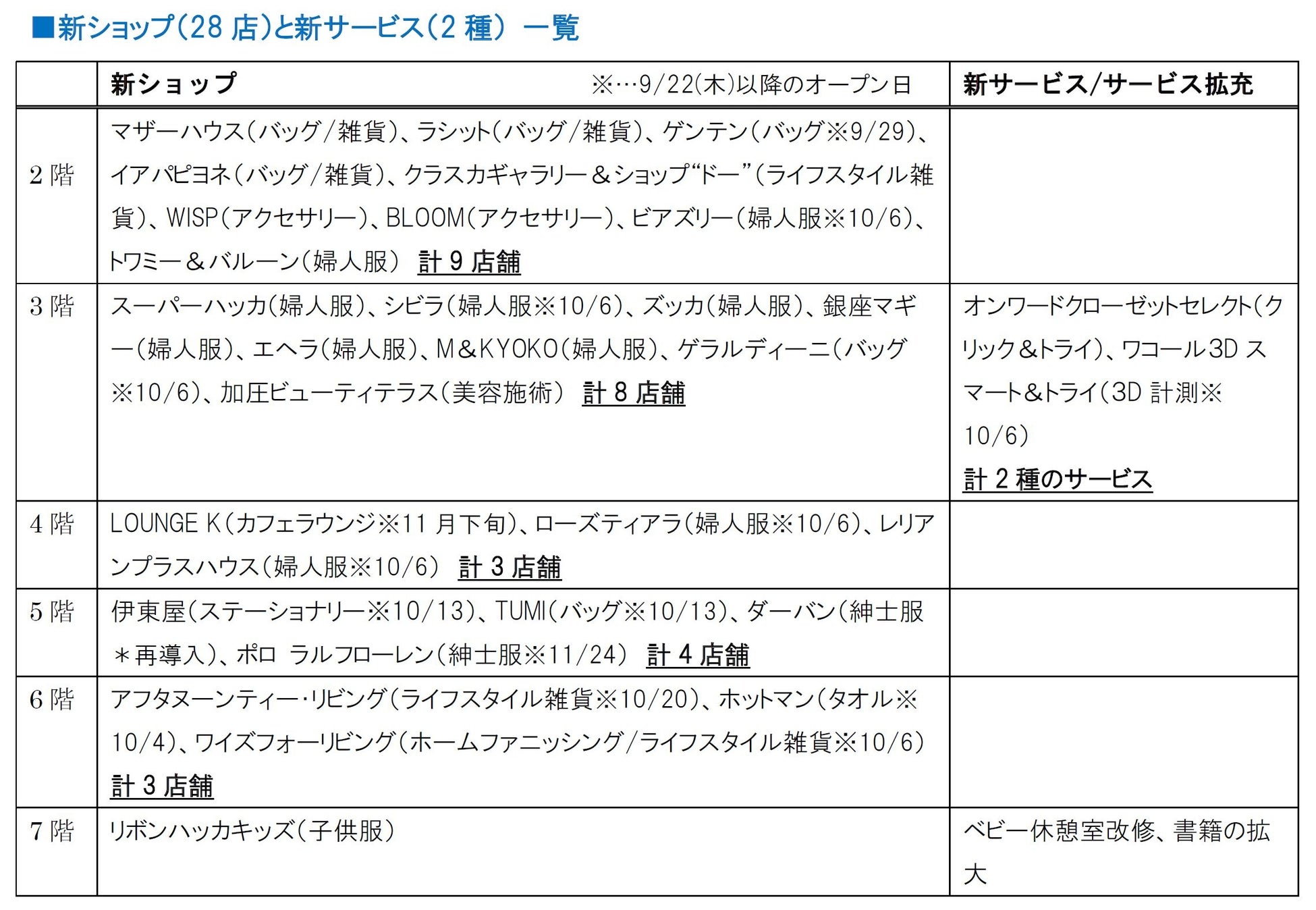 - 新ショップ(28店)と新サービス(2種) 一覧