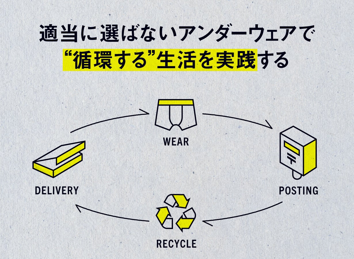 リサイクルシステムとの組み合わせにより、自然を無駄にすることなく、常に綺麗なアンダーウェアが手元にある生活を提供したいと考えています。