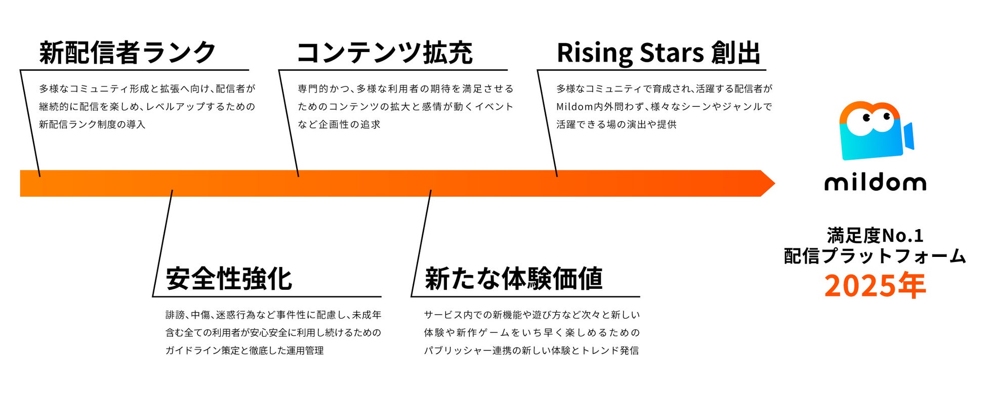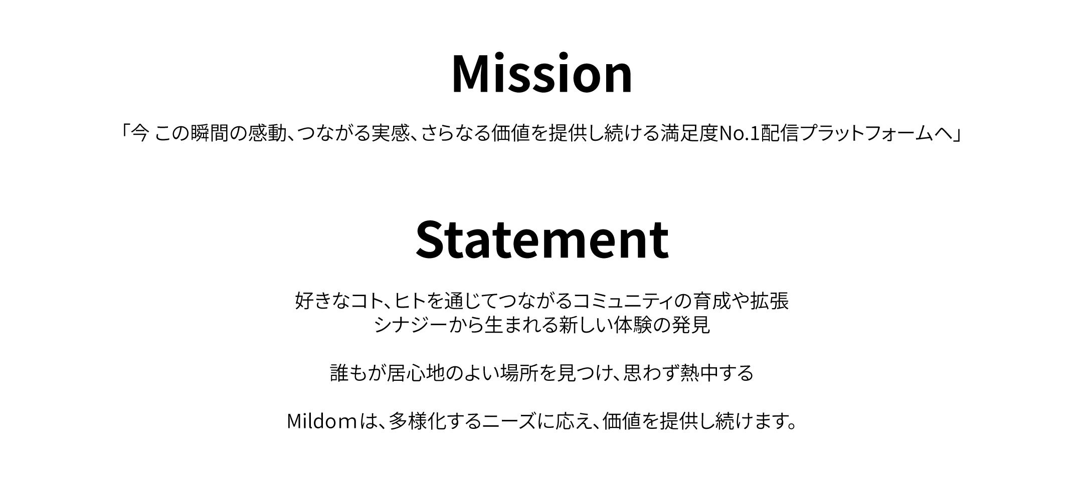 「Mildom」は、2019年9月に「いま つながる いま かなえる いま 楽しくなる」のミッションの下、ゲームを中心としたライブ配信サービスを提供してきました。昨年2021年5月には、月間アクティブユーザー550万人を達成し、ゲーム以外のエンタメコンテンツを活用したライブ配信も増加しています。この度、従来の『ゲームカテゴリーごとのビッグコミュニティ』から、ユーザー同士がカテゴリーを越えてコアな関係を築ける『カテゴリーに縛られないコアなコミュニティの創出』に向けたStatementを新たに制定しました。