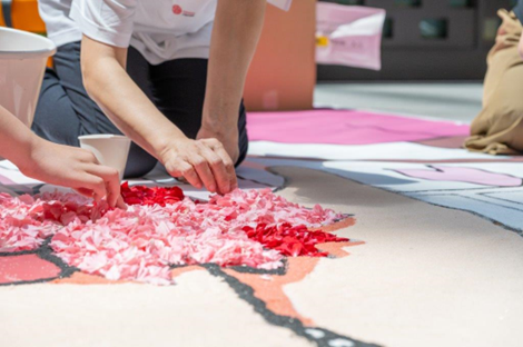 シンボルプロムナード公園お台場デッキにおいて、花びらで地面に大きな絵を描くイベント「インフィオラータ」を開催します。イベントにご参加いただいた皆様に花びらを並べていただき、大きな花絵を完成するイベントです。